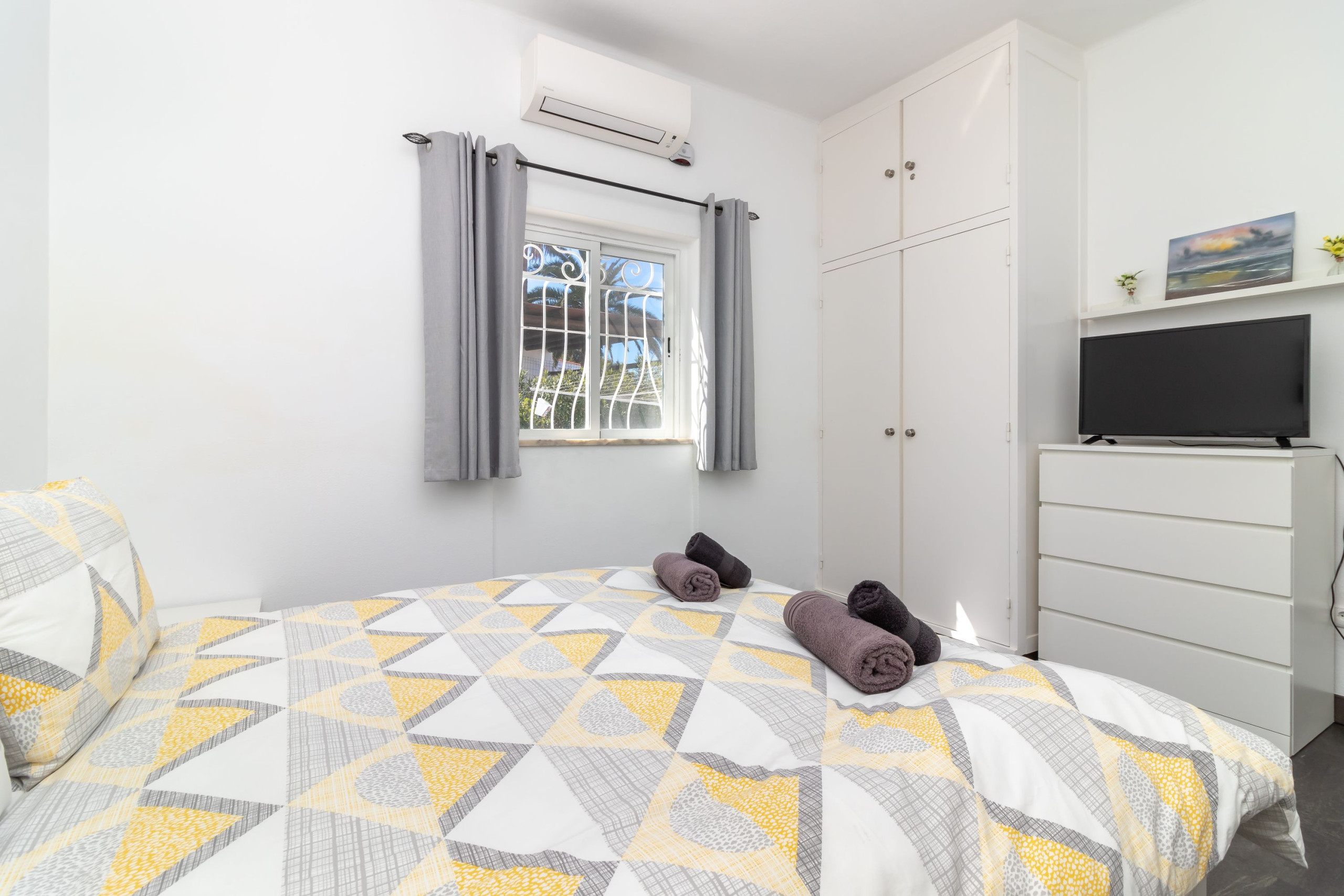 The villa is bright, airy and has dual air-conditioning/heating units, working fireplace, wi-fi and an internet based TV service with UK channels.