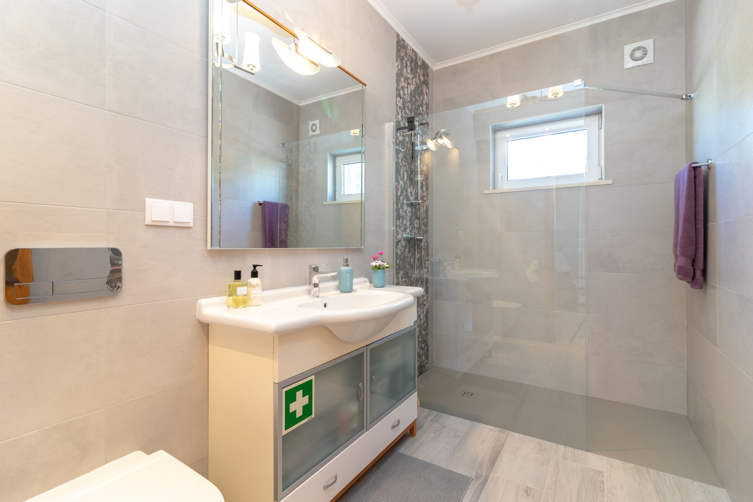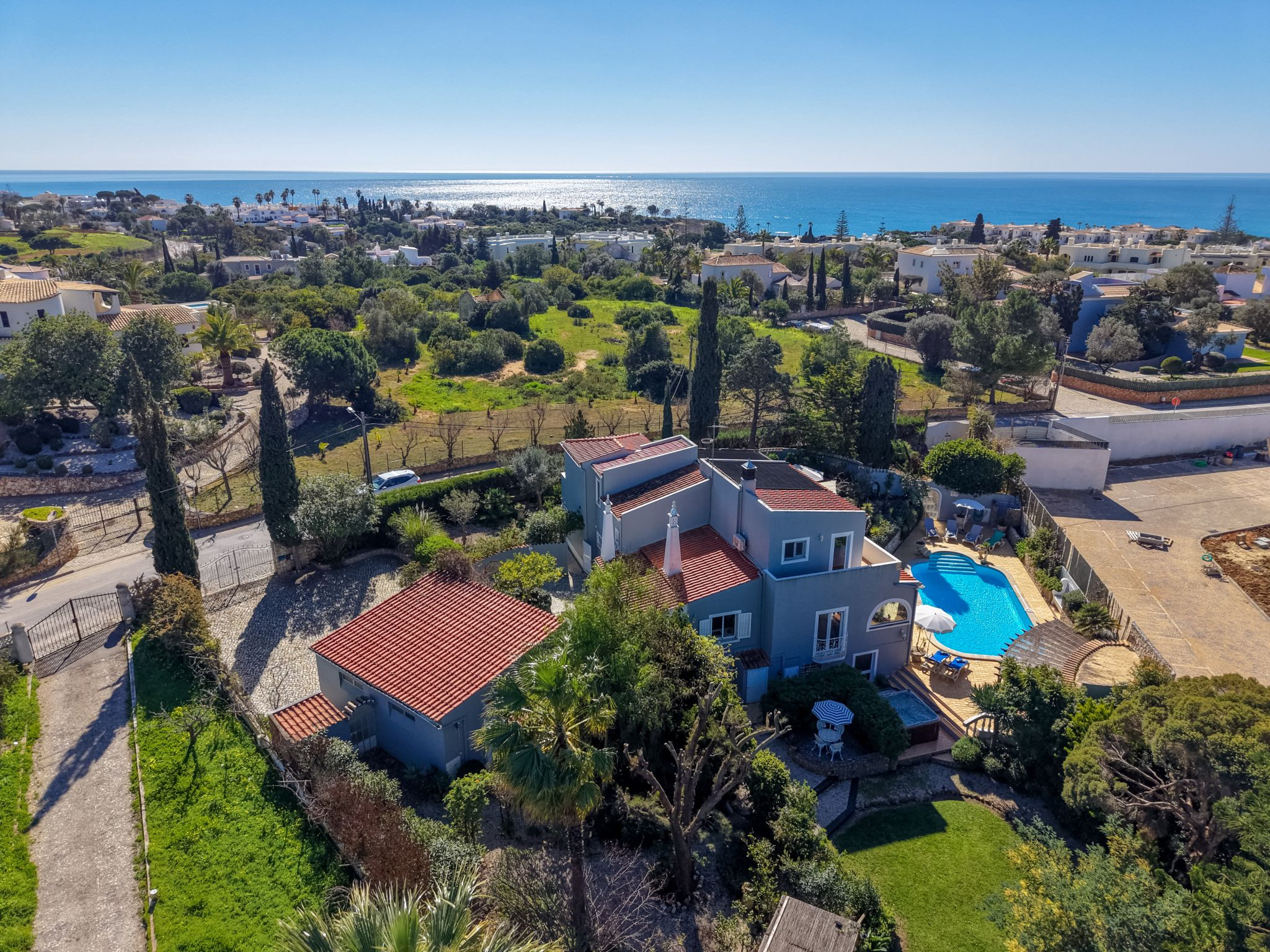 The villa is fully fenced and has electric entry gates. There is a spacious driveway with space for up to 3 cars.